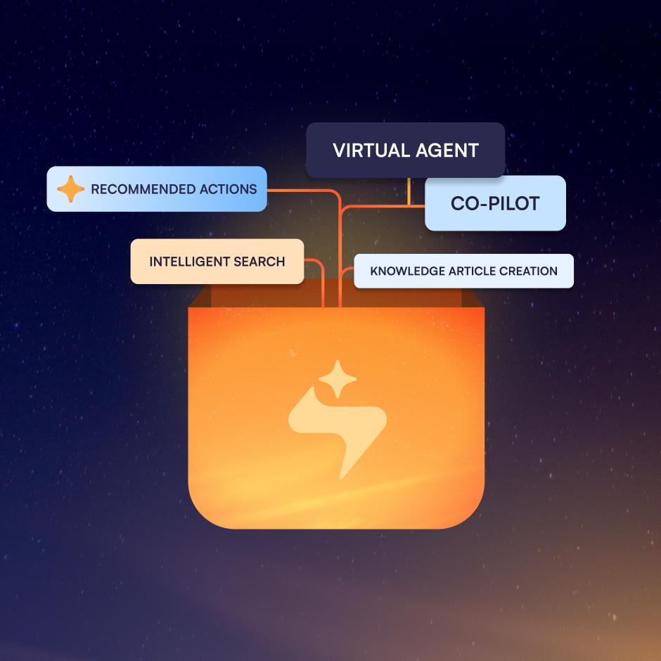Our 4-layer AI engine is embedded in the core — it identifies work, routes and diagnoses requests, executes fulfilment, updates systems, and communicates with users. Autonomously. Around the clock. Across every department.