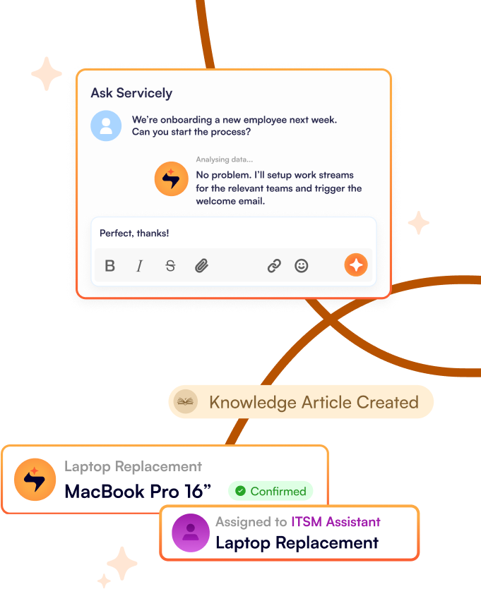 Servicely's AI agents diagnose, decide and execute work for ITSM and enterprise workflows autonomously.