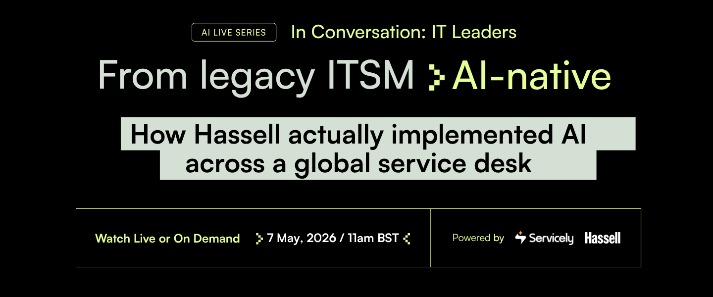 In this session, Sam will go deep with Alem on how they brought Hassell's shift from legacy ITSM to AI-native service to life, the decisions behind it, the build itself, and what it took to make it land across a global workforce.